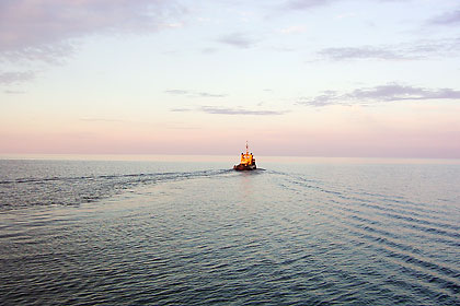No Ruhnu, visdrīzāk uz Sāremā, dodas viens no ostas darbu kuģīšiem. Izbrauc dziļāk jūrā, pagriežas un aizbrauc uz Austrumiem.