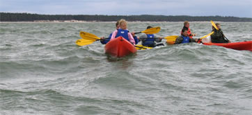 Par spīti zilajām debesīm aiz mākoņa, brāzmas negrasās rimties. Pieņemas spēkā un ilgāk “neatlaiž”. Kuļ jūru. Esam jau diezgan tālu no krasta. Par laimi situācijas nopietnība liek grupai mobilizēties un puslīdz turamies kopā. Brīžiem sanāk gaidīt pēdējās ekipāžas. Man pašam tas gods braukt kā pēdējam, un tas nav no vieglajiem pasākumiem. Pret vidu draņķīgs vilnis no aizmugures parauj vienu ekipāžu un šie “noliek uz vāka”. Gods kam gods, no visām pusēm atskan svilpieni – tātad lielākā daļa tomēr seko līdzi kolēģiem. Laivas sāk grozīties. Šeit jūras kajaka priekšrocība, ar ko braucu rēķinoties, ka nāksies paskraidīt – paspēju pirmais (no pareizās puses, uz ko šajā stāstā būs norāde vēlāk). Krasts aizņemts ar savām trīs beibēm un nav īpaši manevrētspējīgs, Armands mobilizē grupu. Uzguļos, lai papildus nostabilizētu avarējušo laivu, pieturu airi, lai vieglāk iekāpt atpakaļ. Džeki rīkojos ātri un perfekti – airi krītot nav palaisti, saskaņota rīcība; apgāž atpakaļ laivu, viens uzguļas uz priekšgala nostabilizē, otrs veikli ierāpjas no sāna. Tad nosacītajā sausumā esošais kolēģis palīdz otram. Domāju, ka stabilizācija no malas noderēja tieši brīdī, kad laivā kāpa iekšā otrs cilvēks un pieturot airi, lai neaizpeld.