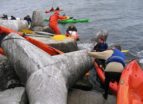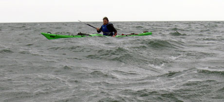 Situācija atrisināta, bet līdz patvērumam vēl ir ko braukt. Brāzmas joprojām pieņemas spēkā un laika apstākļi pārvēršas par vienu lielu un nepārejošu brāzmu. Netālu no “Kobas” iestājas krīze man. Plīstošie sānviļņi komplektā ar brāzmām saķer kajaku un ar spēku un lielu ātrumu met uz sāniem, priekšu, visos virzienos, kā nu sanāk, runājot žargonā, “kolbasī”. Šeit kajaka mīnuss. Kajaks ir ātrāks un manevtrētspējīgāks par SitOnTop, bet arī vieglāks, vieglāk sagriežams un nesalīdzināmi nestabilāks. Lai gan neuzskatu, ka esmu lūzeris “eskī” (eskimosu apgriezienā), ir skaidrs, ka izdotos tikai pie apstākļu sakritības: tādā laiciņā ir ļoti grūti izcelt virs ūdens airi un pēc pirmā neveiksmīgā mēģinājuma (jo nav jau tā, ka tikko pirms 10 min. iebraukts ar mērķi trenēties eskim) stresā var izkrist ceļi, tad “čau”. Laivu parautu un atšķirībā no SOT, piesmelts kajaks-bura strādātu virzienā zem ūdens uz leju. Tātad tajā brīdī spēju domāt tikai par sevi.