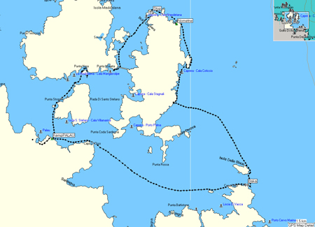 Un tad atkal mainīgais klimats izspēlē veco triku – sāk pūst. Šoreiz par laimi nav augstu kalnu, tāpēc brīze ir mūsu prātiem saprotama. Tiek pieņemts lēmums neturpināt ceļu uz Costa Smeralda (laika resurss), bet aplaivot tuvējās La Maddalena salas. Ņemam meitenes striķī un veicam pirmo pārbraucienu pāri kuģu ceļam.