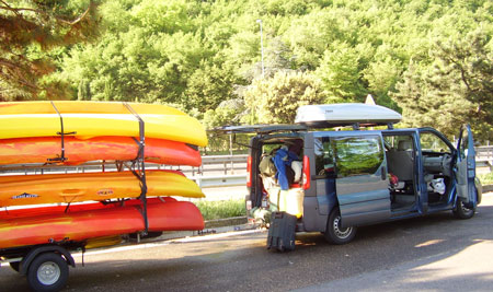 Mēs ar Luīzi piekopām taktiku braukt atpakaļ nedaudz agrāk pa pārējiem, lai paspētu atdzīt busu un citādi menedžētos. Tā rīkojāmies arī šoreiz. Jau drīz pēc griešanās atpakaļ sāk parādīties vēja brāzmas. Sākumā izdevīgi – dzen laivu vajadzīgajā virzienā, tad vējš sāk grozīties. Vēl pēc kāda laika brāzmas kļūst pat draudīgas: arvien stiprākas un griežas virpulī. Acīmredzot tam ir sakars ar gaisa masām (kalni-jūra), kas sasilst un atdziest. Rauj no rokām ārā airi un cepuri no galvas. Griežam uz krastu un braucam gar malu. Kas tāds līdz šim nebija novērots. Lai nebūtu jābrauc jūrā, piestājam pie mola krastā un laivu pārnesam.