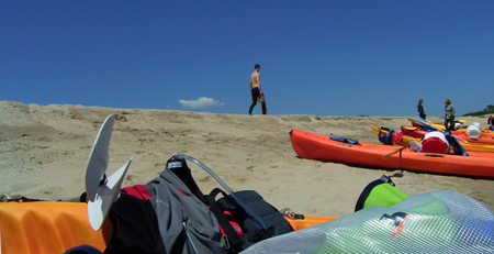 No rīta tālu netiekam – līdz salas ragam, jeb robežai ar aizvēju, t.i., jūru. Kristaps un vēl viena laiva pazūd ap stūri. Neizskatās ticami. Mums viena ekipāža striķī. Pārējie paliekam mazā līcītī. Kāpjam kalnā skatīties, kas un kā. Pūš tā, ka par braukšanu nav ko domāt. Nepaiet ilgs laiks, kad no kalna otras puses parādās Kristaps. Arī metis malā. Nords ar Sigitu vai nu nav pamanījuši vai nu atrod par saviem spēkiem pieņemamu variantu, vai nu nav varianta griezt atpakaļ. Kapā pret vilni pāri. Mums atliek stāvēt kalna galā un vērot. Izskatās grūti. Tas arī nav labi, bet ko padarīsi… Kopš šī brīža minētā ekipāža pazūd no hronikām. Nedaudz mierina, ka viņi ir spēcīgi un abi vai nu ir vai tūlīt būs oficiāli jahtas kapteiņi (t.i., saprot par un ap ko lietas jūrā), bet vienalga razklads nepatīk.