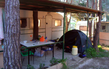 Kalnos kāpēji par mums jau parūpējušies un tāpēc varam uzreiz iekārtoties kempinga mājiņās (vecos treileros, ja pa pieticīgo) un fiksi diebt uz vietējo Super Merkato. Jau Livorno brīnijāmies, ka veikali un ēstuves nestrādā. Izrādās, ka darbalaiki ir no astoņiem līdz vieniem un no pieciem līdz astoņiem.