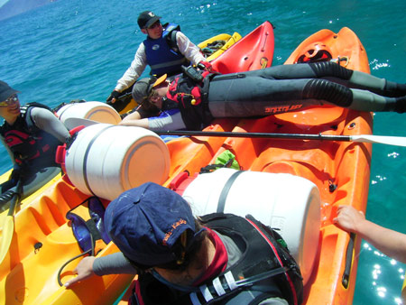 Lai uzmundrinātu tautu, Kristaps demonstrē un aizbrauc. Sakāpjam laivās un braucam arī pārējie. Joprojām velkam otru ekipāžu. Kristaps zvana un dod instrukcijas, no kā jāuzmanās. Pēc brīža ziņo, ka mēģinot aizmukt no kāda kuģa esot pārmaucis pāri. Līdz ar to ceļš ir viens – griezt tādā vējā kajakā sānu vilnī nav prātīgi un atliek turpināt pret vilni. Mīnus vēl viena laiva. Labi, ka uz to laiku jau zinām, ka Norda un Sigitas ekipāža veiksmīgi finišējusi. Veicam izšķirošo manevru apkārt garajam molam, gar kuru iet kuģu celš.