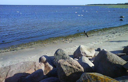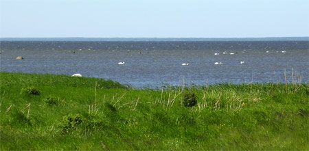 Gulbju daudz un visapkārt salai.