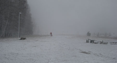 Sāk putināt arvien pamatīgāk. Redzamība ne visai. Pasākuma dalībnieku domas par pareizu braukšanas virzienu neskarīt, bet līdzi ir GPS. Kā parasti šķiet, ka GPS melo un jāņem bišķi pa kreisi, bet kā parasti GPS’am ir taisnība.
