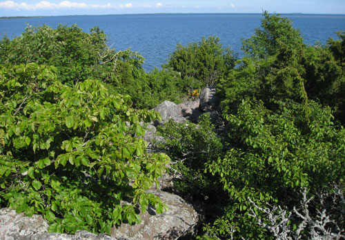 Uz vienas no saliņām mūs sagaida pārsteigums – gar krastu dzīvojas aitu bariņš, kaut zinām, ka sala nav apdzīvota. Izrādās, ka uz daudzām no nelielajām saliņām dabas parka administrācija uztur aitas un pļauj zāli, lai saglabātu unikālo ainavu – kadiķu audzes. Aitas tiek pavasarī ar laivām uz šejieni nogādātas un rudenī vestas atpakaļ uz kontinentu.