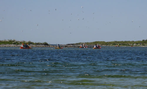 Pēc nelielas atpūtas karstajā saulē dodamies uz tām – Vaikas salām, jeb kā tās mēdz dēvēt par putnu salām, putnu paradīzi. Tās ir ārkārtīgi mazas un izmērā varētu līdzināties kādas lauku skolas sporta zālei, taču ir ļoti biezi apdzīvotas – putni no vienas vietas.