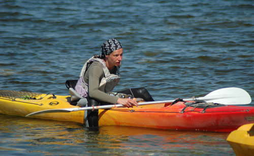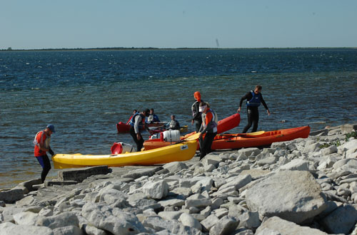 Tomēr izrādās, ka kaut ko tomēr esmu apguvusi un itin knaši tiekam pāri uz pēdējo dienas pieturvietu – Loonalaid salu. Tur saņemam stingrus norādījumus no Šulca, jo vējš ir pastiprinājies un neuzmanīgus laivotājus var ienest tieši atklātā jūrā. Godīgi klausām ieteikumam turēties vairāk pa kreisi, neatrauties no pārējām laivām un īsā laika sprīdī esam pāri šaurumam atpakaļ uz „bāzes nometni”.