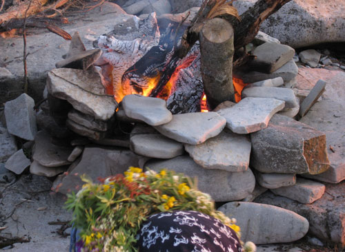 Vakarā ir Līgo. Grupas sievišķā daļa pin vainagus un izpelnās salīdzinājumu ar Kaucmindes tehnikuma audzēknēm, grupas vīrišķā daļa tikmēr „riktē” ugunskuru un dzer alu. Idilliski. Par laimi nevienam nav noskaņojuma dziedāt līdz riebumam apnikušās līgo dziesmas, kuru dēļ jūnijā parasti gribas emigrēt no valsts. Sēžam ap ugunskuru, kadiķu dūmi atkal ir radījuši vajadzīgo efektu un iepriekšējo vakaru blēņustāsti par irsi, viņa labo roku mehānisko aitu un nu jau arī mehānisko gulbi ir atgriezušies ar dubultu uzviju, tiek dibināti gandrīz sektantiski klubiņi un apvienības, degustēts siers un citi labumi, notiek fotosesija uz rietošas saules fona, sveicam mūsu divas Līgas un divus Jāņus. Izturīgākie esot pat sagaidījuši saullēktu. Manos Jāņos kulminācija bija agri no rīta, kad izmantoju situāciju, kad visi vēl saldi guļ, devos izbaudīt lielisku peldi jūrā. Ūdens bija atsvaidzinoši vēss, bet sajūtas lieliskas.