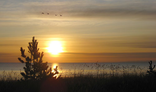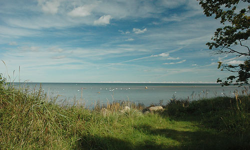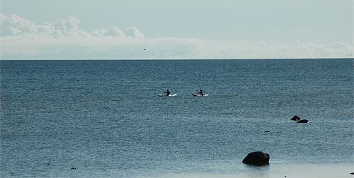 - 10.30 startējam. Jūra pēc vakardienas Ziemeļa pamazām rimstas: pirms Engures palīdz līča aizvējš un arī vējš griežas no rietumiem. Rezultātā mērens pretvējš. Tas nepārsteidz, jo kā vēsta tautas ticējums, “airē, kur gribi, vējš vienmēr būs pretī”. Veicam 2 garākus parbraucienus: vispirms 9 km līdz Apšuciemam.