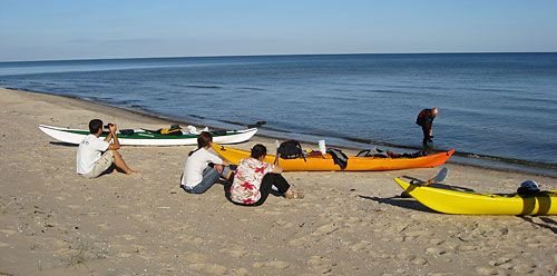 - Līdz Mērsragam braucās labi, pēc Mērsraga optimisms mazinās: ierastais 4-5m/s krasta vējš/pretvējs. Ātrums ar piepūli 5.5-6 km/h. Pirms Kaltenes saprotam, ka kļūst arī brāzmains un nes jūrā, tāpēc griežam tieši uz krastu un metam malā. To, ka zeme par spīti niknai airēšanai nekļūst tuvāk, Raimonds saprot krietni vēlāk un kādu laiku nav saskatāms pat tālskatī…