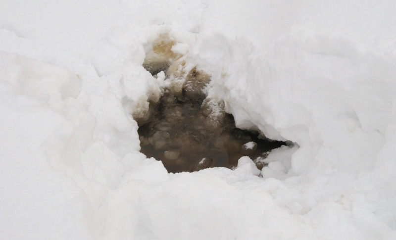 Tas notika tā: vispirms ielūza kreisā kāja. Kamēr apsvēru iespēju a) guļus ripināties nost pa ledu, ko ieteica arī pārējie bradātāji, b) spert izšķirošo soli, lai tiktu krastā, ielūza otra kāja. Tad vairs nebija laika domāt, jo atrados līdz viduklim ūdenī, turklāt grāvis izrādījās dziļāks kā izskatās: ar vienu pusrumpi paliku uzkāries uz grāvja vaļņa, ar otru pusrumpi atrados ūdenī un nevarēju aizsniegt apakšu. Izkārpījos no viltīgā grāvja un padomāju, ka labi, ka neielūzu līdz ausīm.