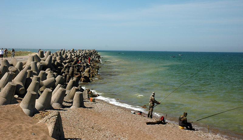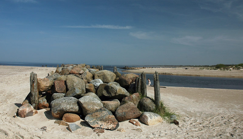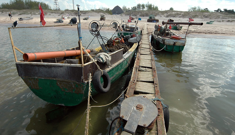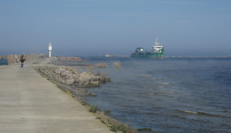 Tuvojoties molam ūdens pamazām sāk šūpoties un no jūras dveš dzestrums. Uzreiz aiz Delfinārija mūs uzrunā formā tērpts lietuvietis – amatpersona.