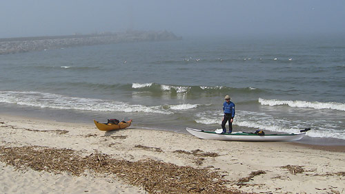 Otrajā dienā uz ūdens un trešajā ceļojuma dienā veicām 26km, no kuriem pa jūru 13km. Neatbilstoši iepriekšējā vakara laika prognozei (4-5 m/s) pūta diezgan stiprs Z vējš, pēc mūsu izjūtas (kas vēlāk apstiprinājās) 5-7m/s, brāzmās līdz 10m/s. Jūra kajaka mērogiem viļņojās jau pēc iepriekšējo dienu pūtiena. Izbraukšana cauri šaurajam Klaipēdas molam bija jēdziena „ekstrēms” cienīga dēļ dzīvās kuģu satiksmes, lielajiem viļņiem un ledainā ūdens. Pēc izkāpšanas krastā turpinājām ceļu Palangas virzienā. Ap 16’iem bijām spiesti meklēt apmetnes vietu „neatejot no kases”, jo viļņi kļuva pārāk lieli un plīstoši.